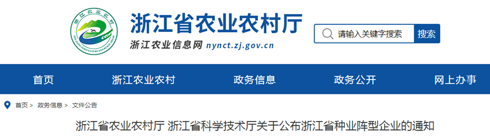 914浙江省農業農村廳浙江省科學技術廳公布浙江省種業陣型企業名單,其中浙江青蓮食品股份有限公司認定為畜禽種業綜合性陣型企業